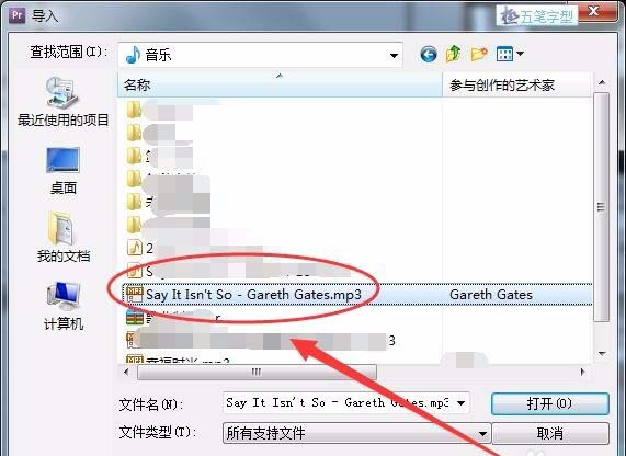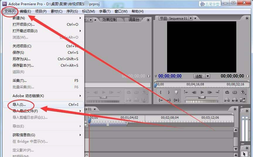 6、重新選擇文件---->導入,在導入窗口中選擇導入一個音樂文件。