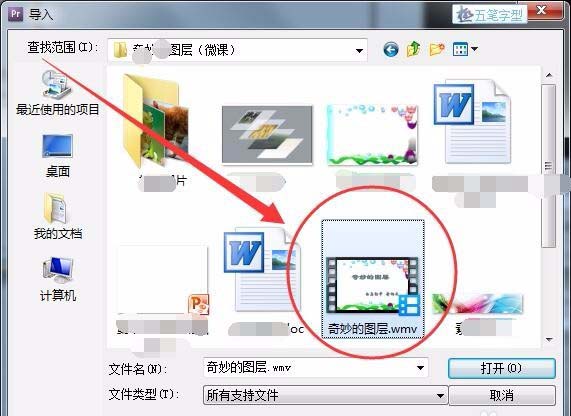 3、導入窗口中,選擇導入的視頻文件。