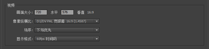 5、視頻界面畫面大小是設置畫面的寬高的數值,比如要1080p的話,就要設置1920的寬度和1080的高度;縱橫比是控制畫面的比例,一般就4:3,16:9幾種設置;制作節目的時候,一般場序要設置成無場,否則會出現從上到下或者從下到上的掃描線。