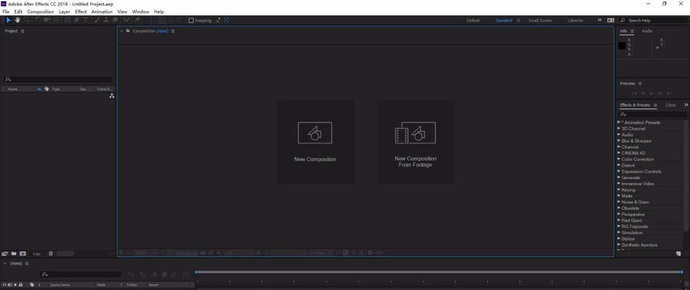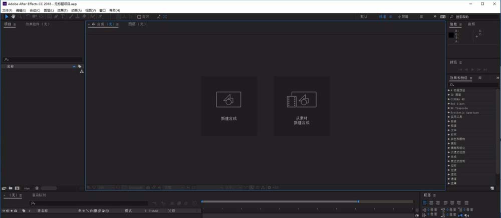 7、當我們重新打開AE CC2018,界面已經切換到英文界面。