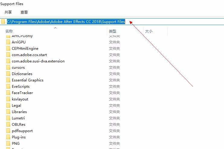 2、找到AE2018安裝目錄,例:軟件默認安裝在C盤路徑C:/Program Files/Adobe/Adobe After Effects CC 2018/Support Files