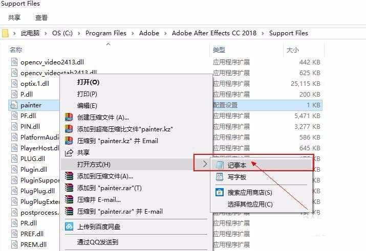 3、在路徑目錄里找到painter.ini文件,右擊以文本的方式打開。