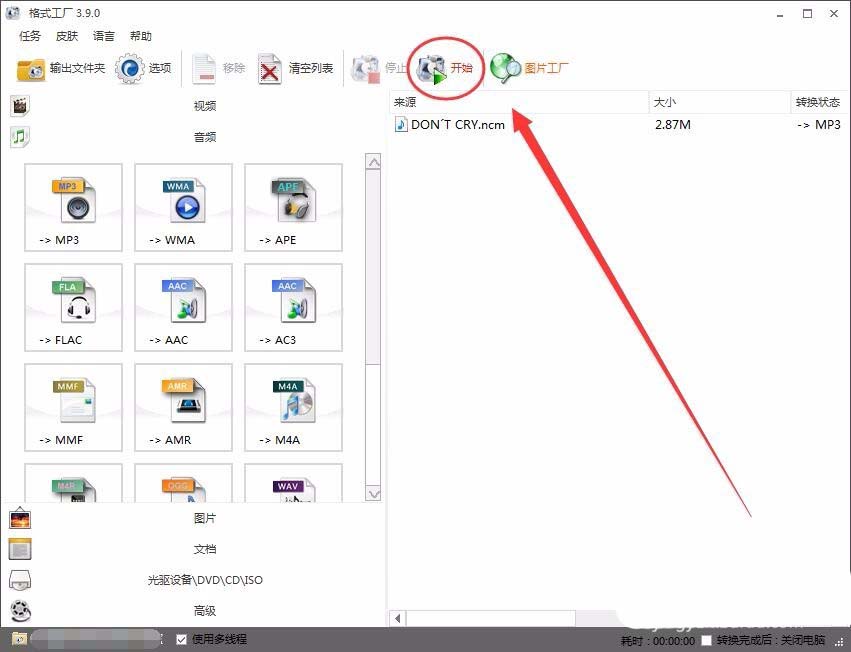 8、單擊開始按鈕,音樂格式就開始轉換了。