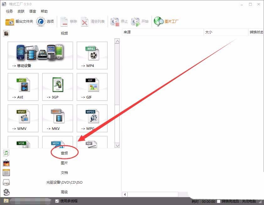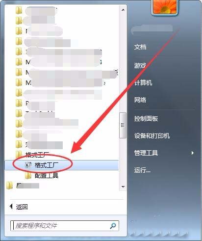 1、首先,選擇開始---->所有程序---->格式工廠,打開格式工廠軟件。