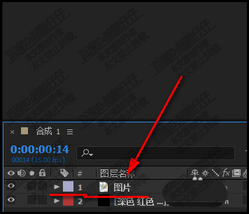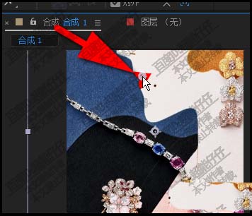 1、在新建的合成上,把圖片素材導入到軟件中,再拉到時間線上的圖層面板這里來。圖像顯示在合成窗口中。