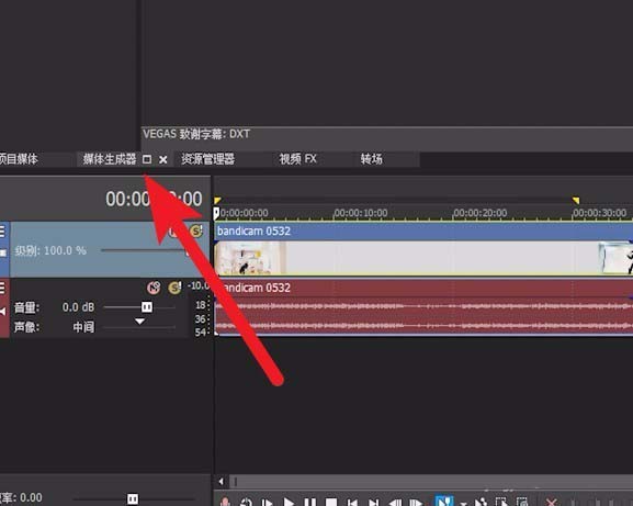 2、點(diǎn)擊圖片中箭頭所指的標(biāo)簽,切換到媒體生成器中。
