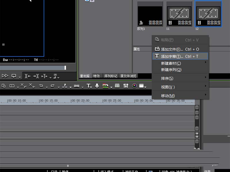 1、首先啟動edius6,在素材庫中右鍵單擊選擇添加字幕選項。