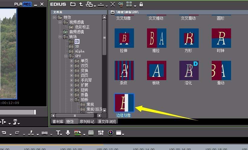 1、首先就是邊緣劃像的位置,邊緣劃像位于特效-轉場-2D里面的最后一個