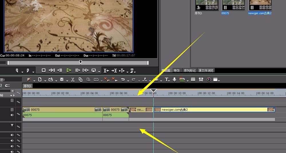 3、將這個交叉劃像直接拖拽到相鄰處,就添加了默認的效果
