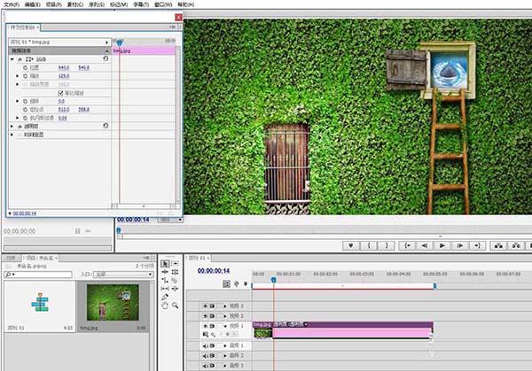 1、新建項目與序列,將圖片導入,插入視頻軌道1,調整如圖所示。