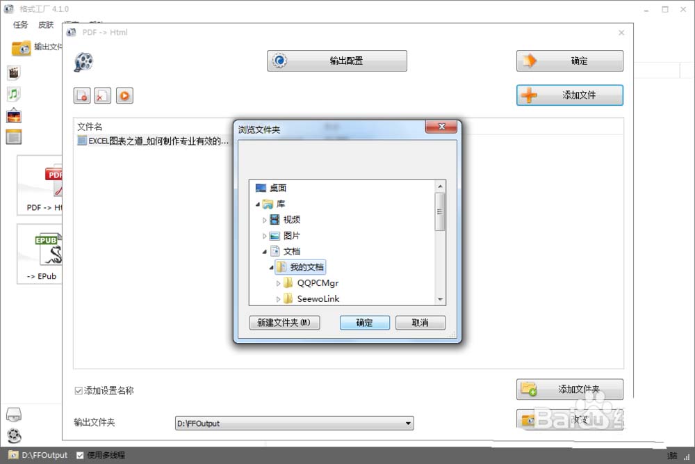 4、改變輸出文件夾:在輸出文件夾那里點擊改變——選擇自己準備要存放的文件夾,點擊確定就更改了新的輸出文件夾。
