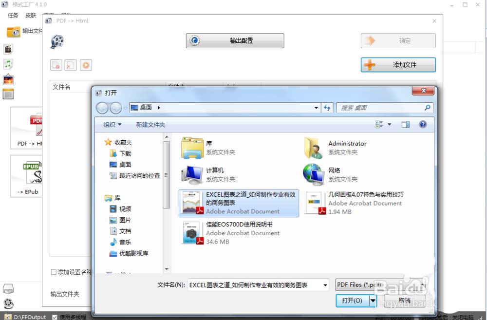 2、點擊添加文件——在跳出的選擇框中找到自己要轉換的PDF文件——選擇后點擊打開,也可以雙擊直接打開添加文件。
