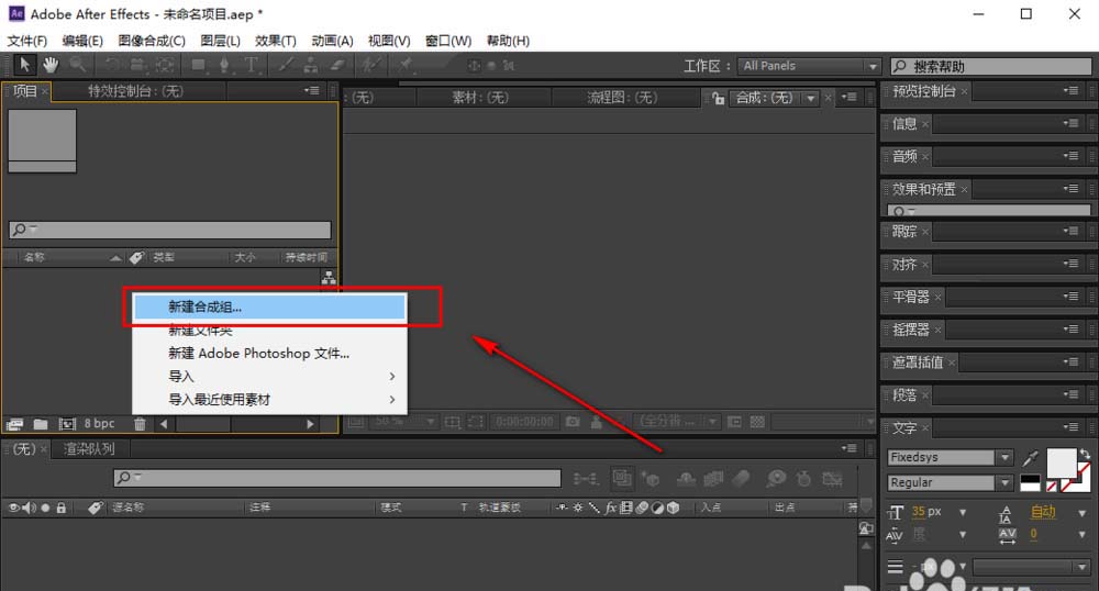 1、首先在如圖位置,用鼠標右擊。點擊新建合成組