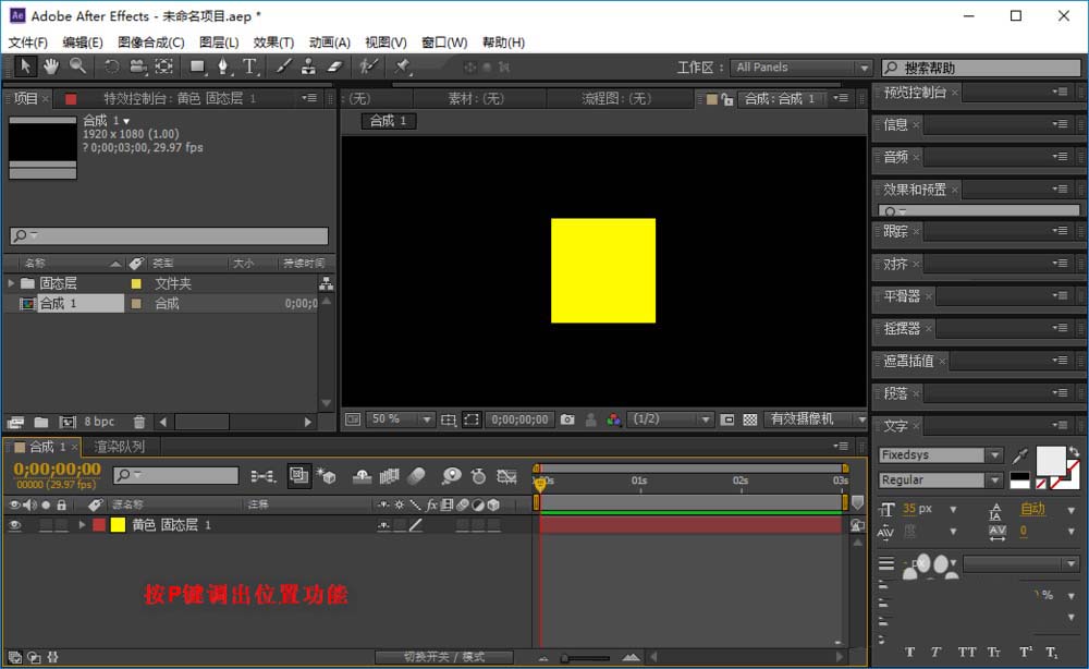 5、下面我們已經建了一個固態層,點擊鍵盤上的p鍵,調出位置功能