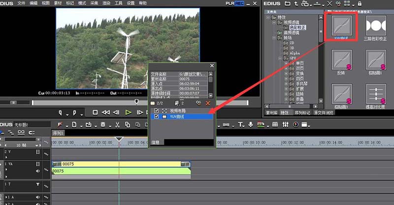 2、YUV曲線找到之后,直接拖到視頻的信息面板里面