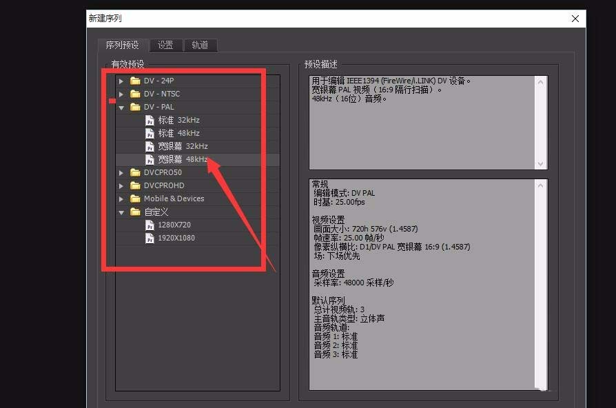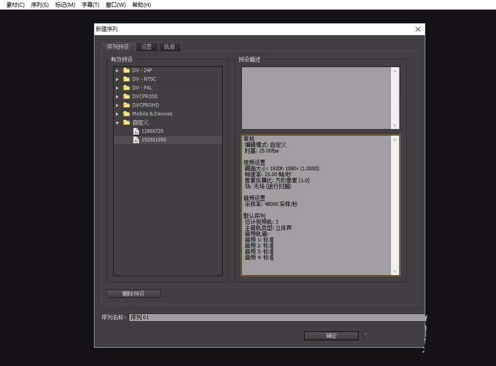 2、在新建序列里面,pr為我們準備了N多的預設供我們選擇,包含了大部分的常用分辨率