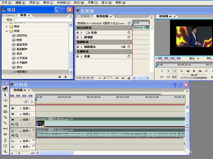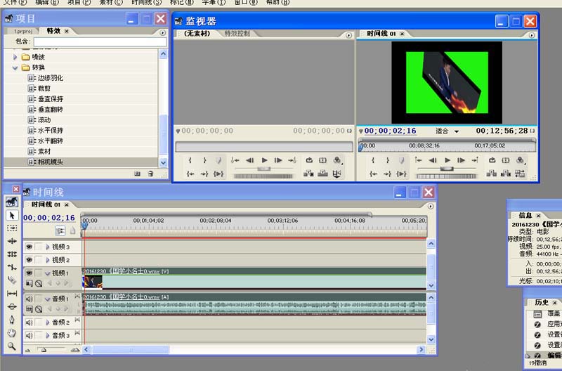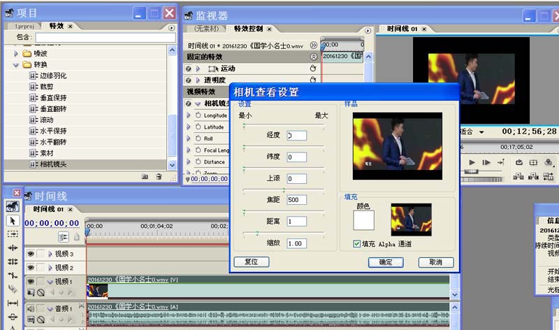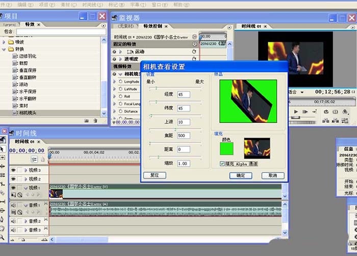 5、在時間線上播放查看效果,如何感覺不合適的話,再次調出相機查看設置對話框,重新設置參數。
