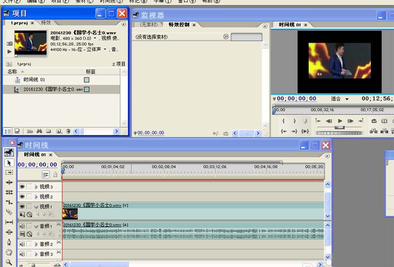 1、首先啟動premiere7,執行文件-導入命令,導入視頻素材后拖拽到視頻軌道上。