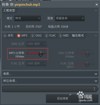 5、在彈出設(shè)置框中調(diào)節(jié)MP3比特率,左右滑動,然后點(diǎn)擊開始即可。