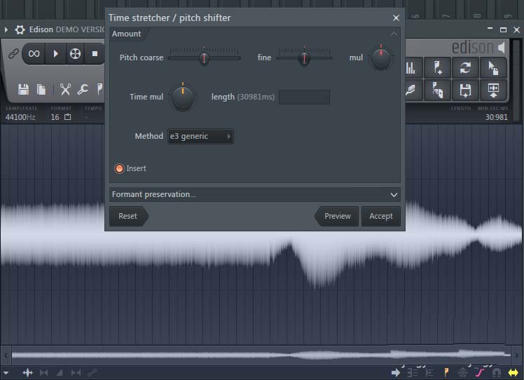 2、搜索插件,找到Edison插件。 我們在新通道中打開,下圖是變速變調(diào)處理按鈕。我們先加載一個采樣為例。