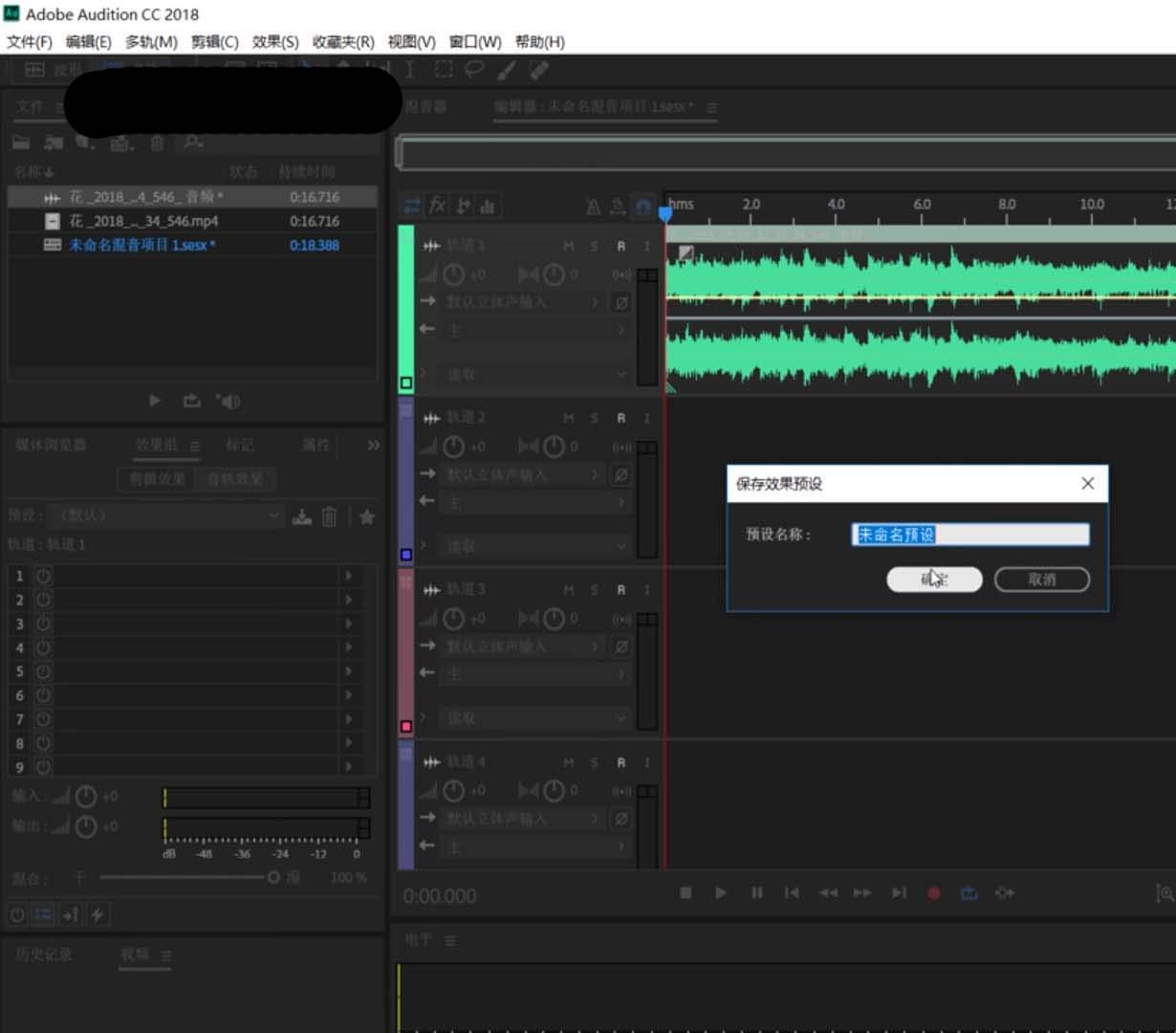 5、在左面面板中也可以進(jìn)行保存效果預(yù)設(shè)等對音軌的操作