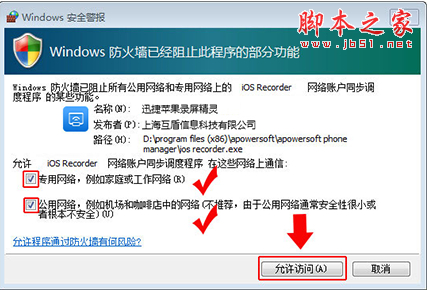 1、在彈出的“window安全警告”窗口勾選專用網絡和共用網絡并允許訪問。