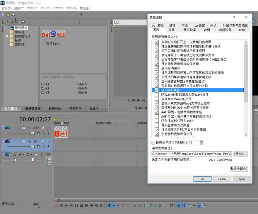 2、在彈出的“參數(shù)選擇”對話框中選擇“常規(guī)”選項(xiàng)卡,可以看到第12項(xiàng)就是“啟用搖桿支持”。