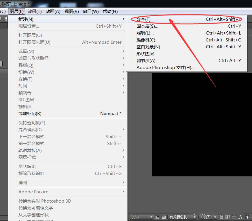 1、執行命令:“圖層>新建>文字”,快速建立一個新的文本圖層。