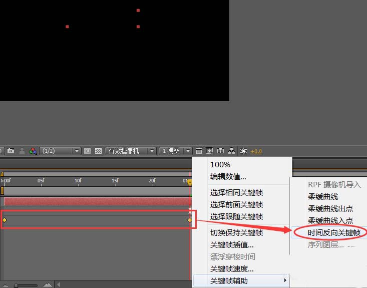 4、如果你希望是從無文字到有文字的話,可以框選中所有關鍵幀,右擊鼠標,選擇時間反向關鍵幀,使動畫產生相反的效果。