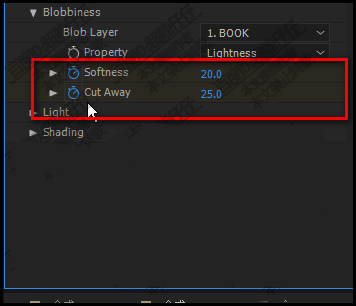 4、然后,我們在:softness和cut alway,這兩項的碼表各點擊一下,打下關鍵幀(時間線這里處于0幀的位置上)