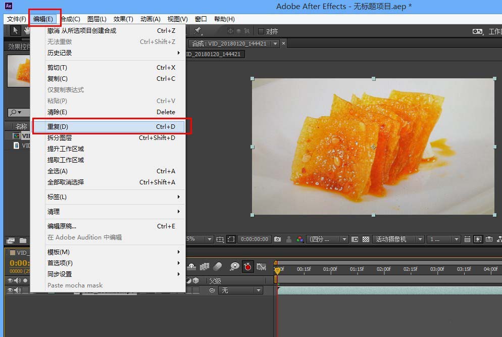 3、點擊編輯重復,或者直接用快捷鍵ctrl +d復制一層,可以看到有了兩個圖層