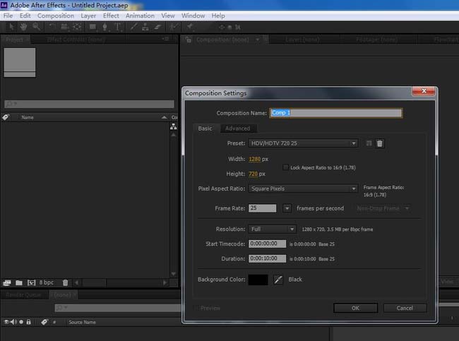 1、根據(jù)視頻的編輯尺寸新建合適的AE源文件