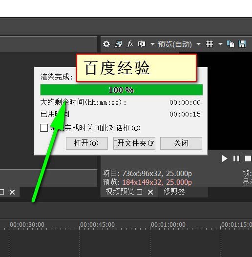 8、之后等待vegas渲染成功便能夠打開(kāi)文件夾查看導(dǎo)出的媒體啦。