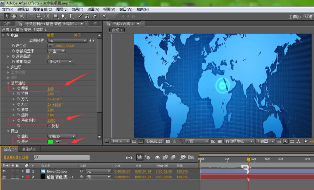 6、調整一下電波的頻率、壽命和顏色就可以了,具體可以按照自己的要求改動,這樣就完成了。