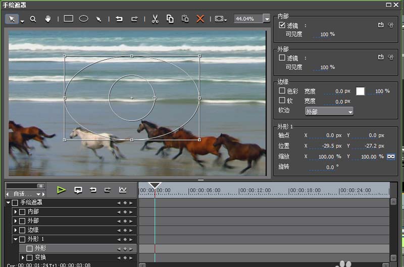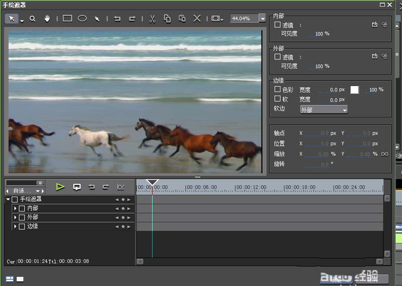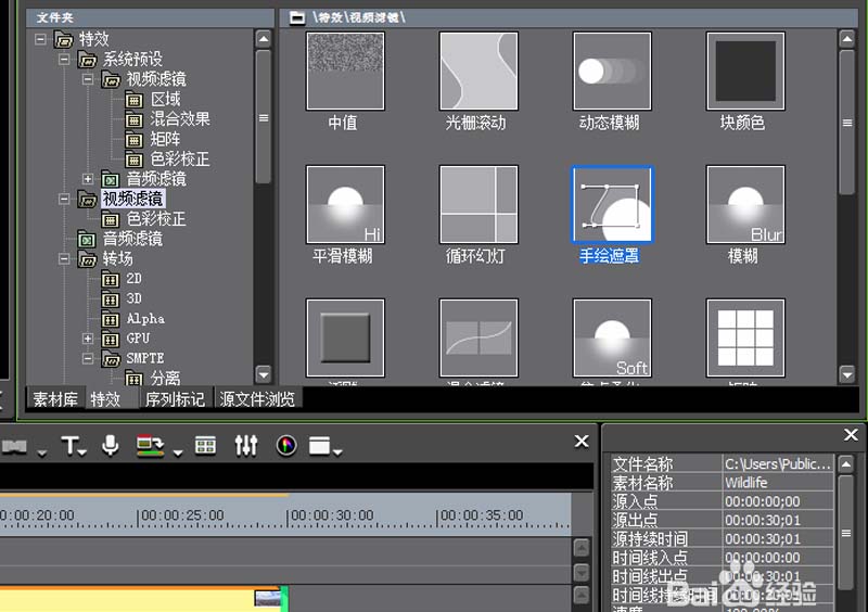 2、執行特效-視頻濾鏡命令,從中選擇并拖拽手繪遮罩到va軌道上。