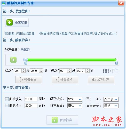 1、點擊添加歌曲,添加想要做成鈴聲的歌曲。