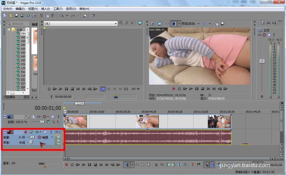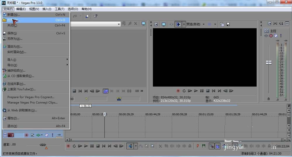 4、 打開視頻之后,看到Sony Vegas 軟件主頁面,有兩個軌道,一個是音頻,一個是視頻圖片。