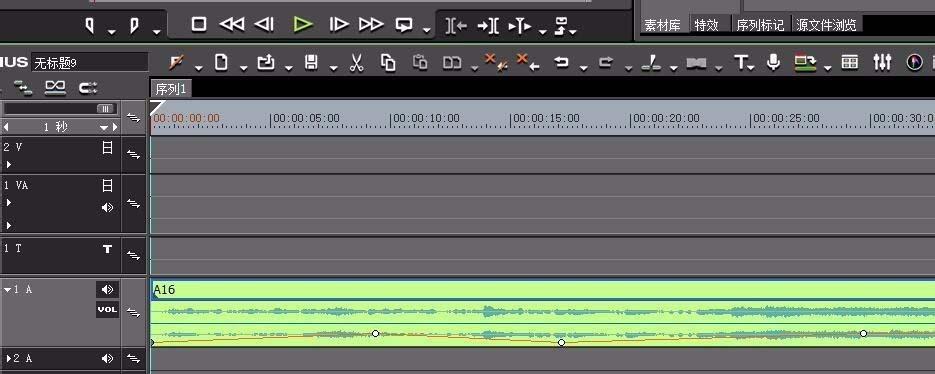 2、再就是音頻的導入素材庫,并將其拖至時間線上的音頻軌道