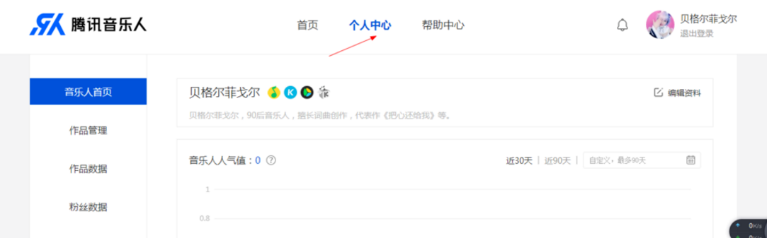 6、審核通過后,你就是騰訊音樂人了,可以掌管6大平臺。其他平臺數據都會更新上來,而且還可以上傳作品,隨時了解作品數據。