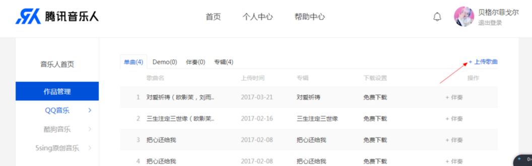 (2)擁有音樂人專屬管理后臺,自主發布和管理自己的專輯和歌曲,查看歌曲、粉絲、收入等詳細數據;