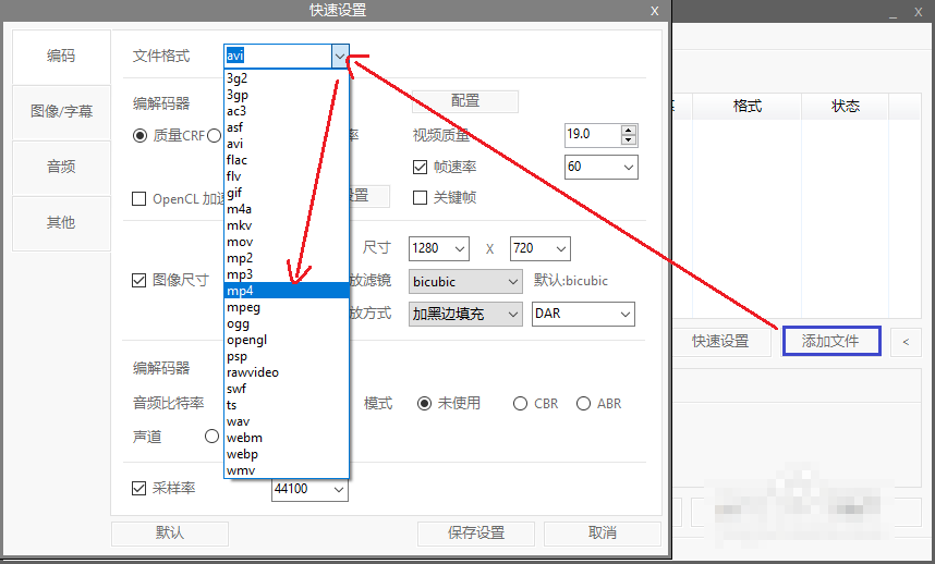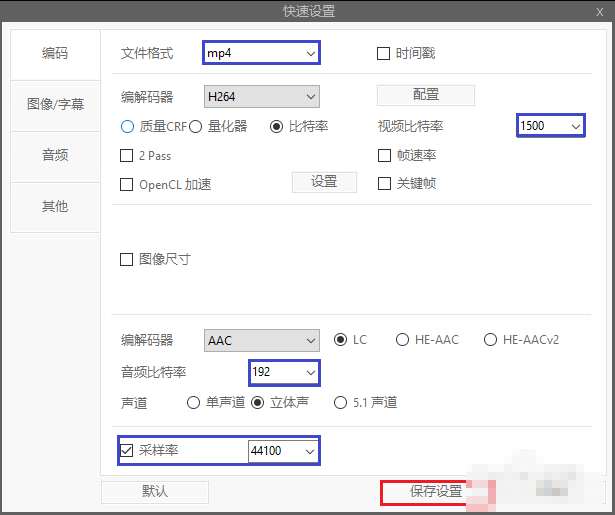 4、快速配置—更改輸出格式為mp4