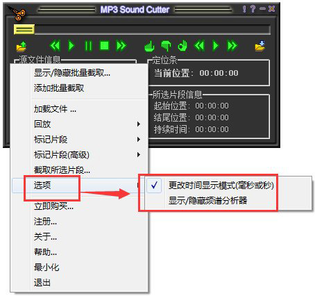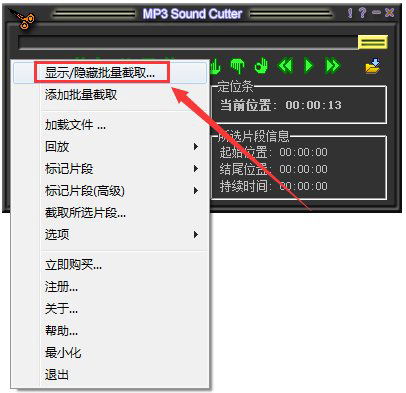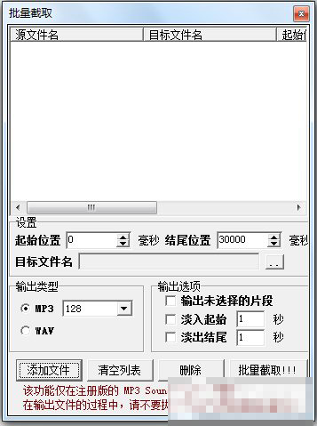 打開要剪切的MP3音樂,然后播放,用“手形”按鈕標記好起始點和終點,最后另存即OK了。(支持MP3/WAV格式)