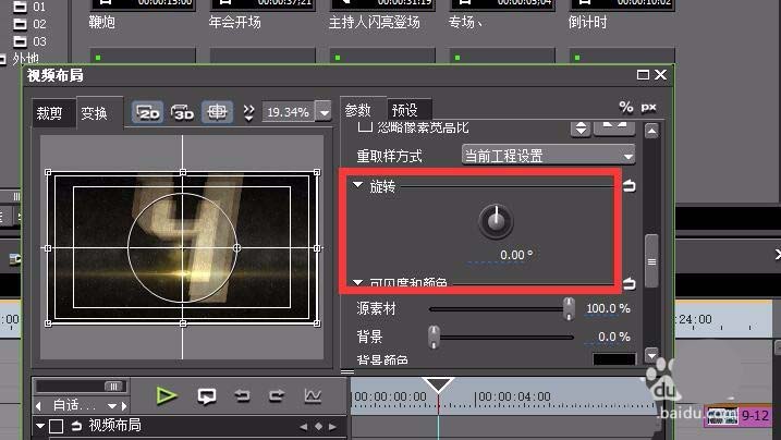 2、在視頻布局里面找到旋轉(zhuǎn)的選項(xiàng)