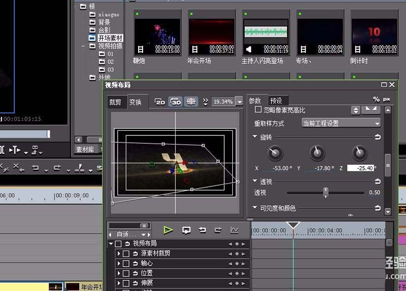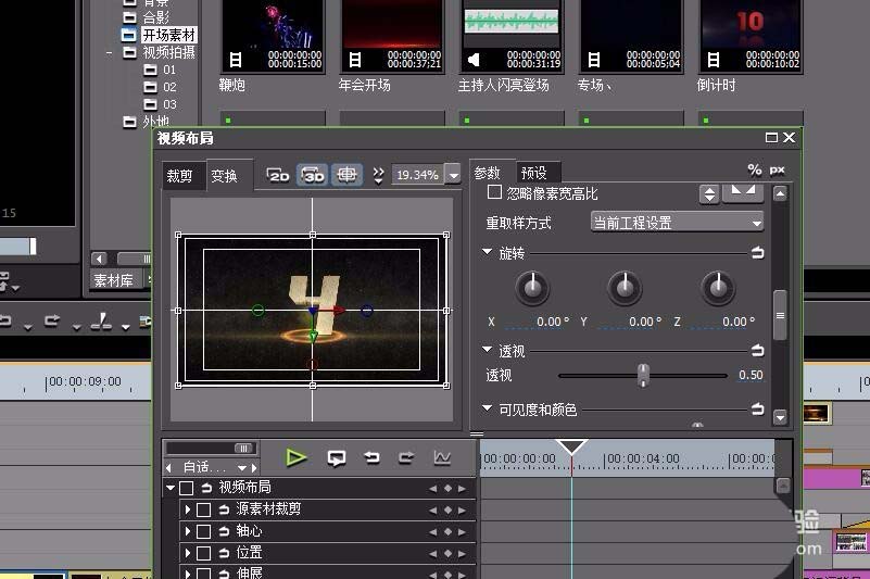 2、設(shè)置XYZ的三個(gè)數(shù)值,將視頻進(jìn)行旋轉(zhuǎn)。
