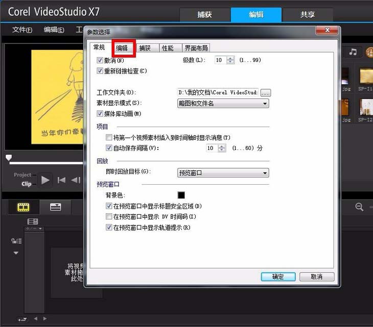 3、接著進入參數選擇的設置界面,默認是常規的選項界面,這里選擇第二項編輯選項。