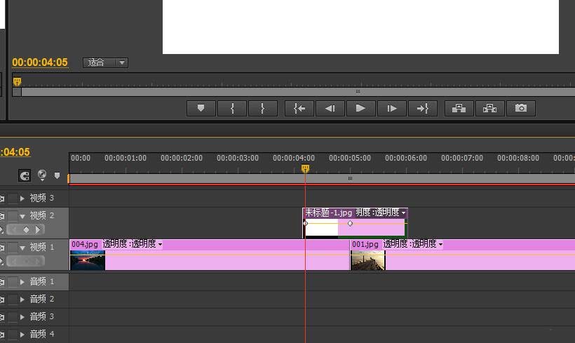 5、將白色圖片進(jìn)行導(dǎo)入,放在兩段視頻的上層軌道上