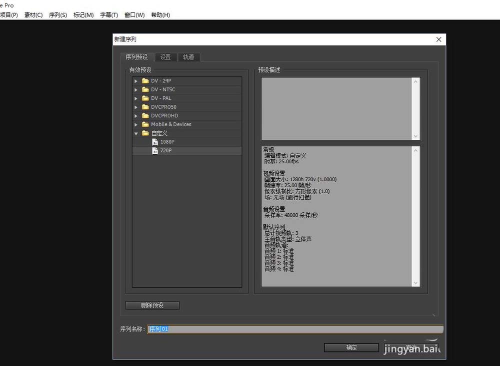 1、首先就是根據(jù)視頻制作的需求新建premiere源文件
