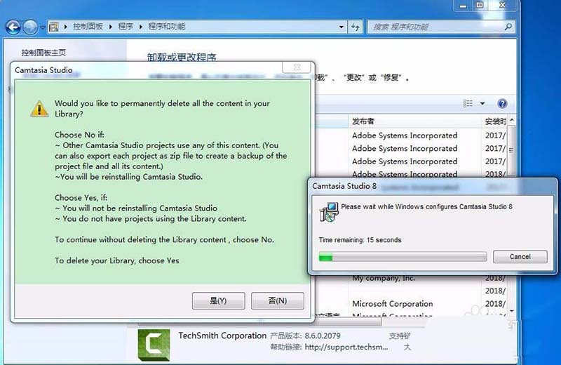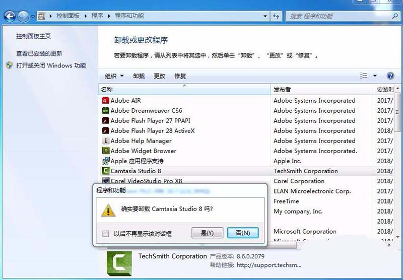 4、最后在重復(fù)上面的步驟就可以,刪除Camtasia Studio 8軟件。