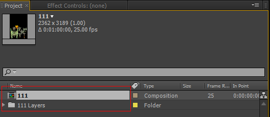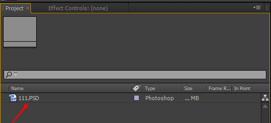 2、先導入AE,發現不像一般的psd文件那樣自動提示你分層還是作為單獨素材導入。這個文件是直接導入成單一素材文件。如圖所示。PSD文件沒法分層就失去了它該有的價值。