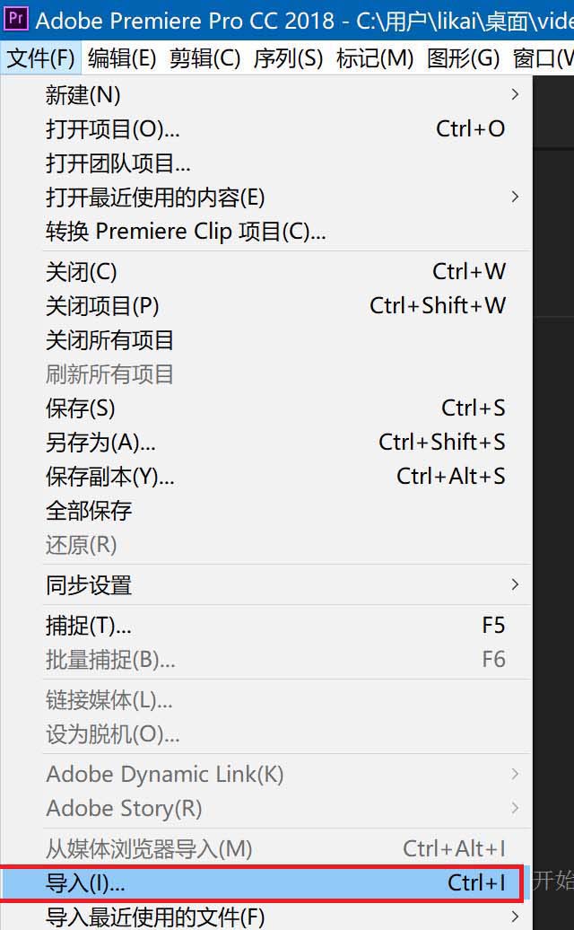 2、點擊文件,然后在彈出菜單中選擇到導入命令。